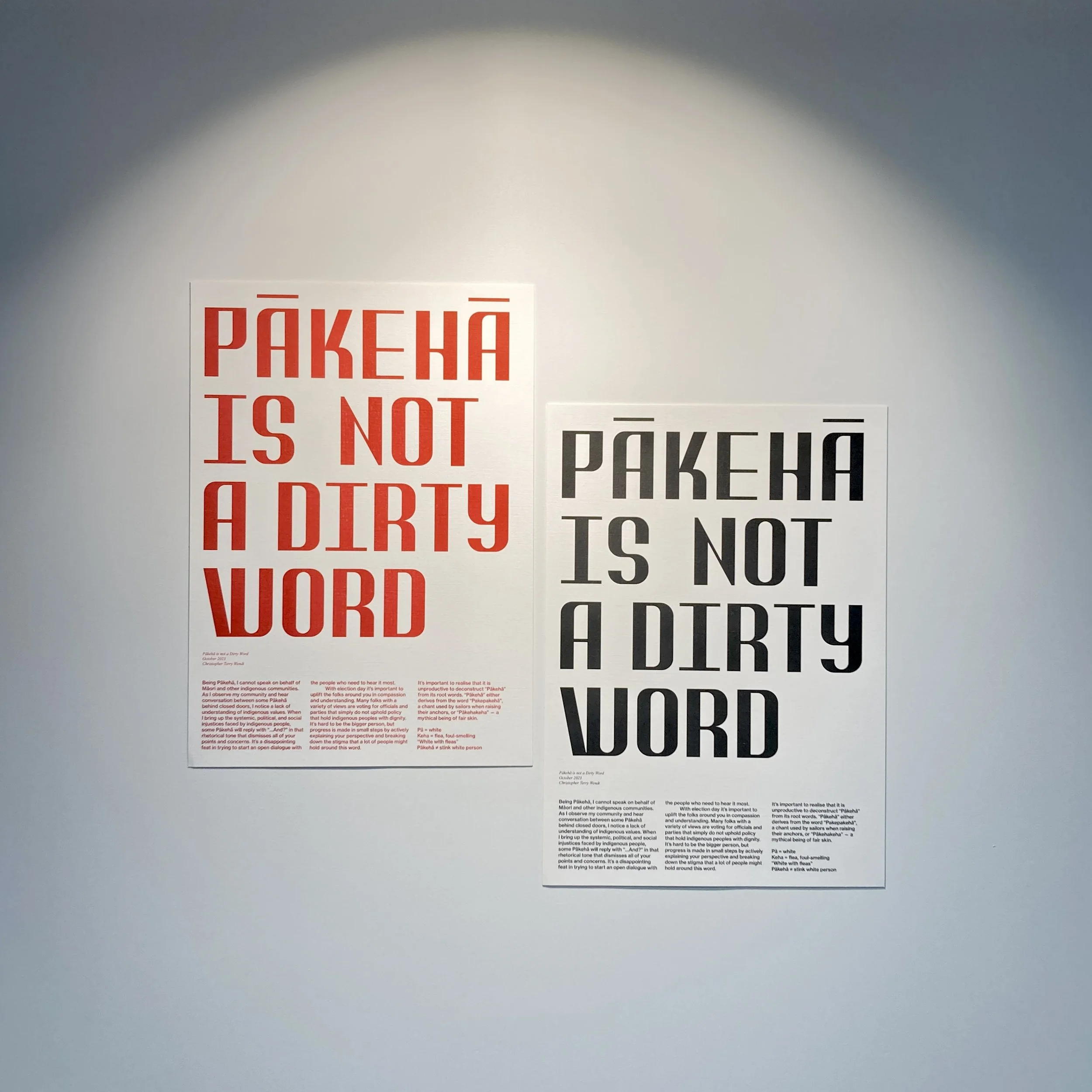 Built on the foundations of cultural awareness, Dirty Word aims to highlight the evolution of the word ‘pākehā’. Bespoke typeface by Christo.